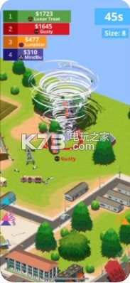 Twisterio(龙卷风大乱斗)安卓版是一款相当不错的io对战玩法休闲游戏,在这款游戏当中所有的玩家们将会化身为一个个强大的龙卷风,并且你将使用自己强大的力量来吞噬一切,吞掉一切的建筑和树木来让自己成长,越来越大力量也是越来越强哦