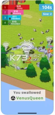 3、在这个精美的游戏世界中,你的一切操作都会让自己变得更强,不断的吞噬其他的龙卷风让自己变得更强吧!
