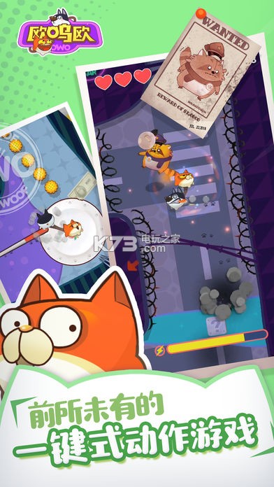 《欧呜欧》这是一款由腾讯旗下的极光最新所推出的一款非常不错的一款趣味性的游戏,非常具有魔性的玩法,在游戏中玩家将进行扮演因意外牵连在一起的猫和狗,将踏上铲屎官之路。