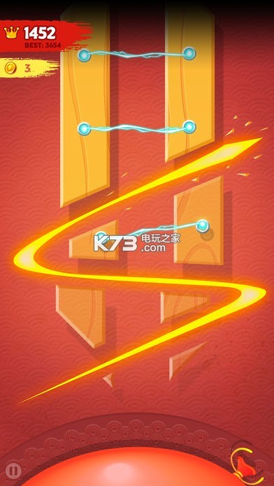 《islash dojo》用手指切割滑动的游戏,会有不断下落的木板,不同形状的,你需要在完全下落之间切割,落下一个的话游戏就结束了,切割木板会获得金币和分数,看你最多能够获得多少分吧。