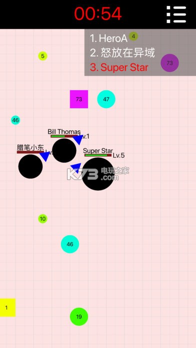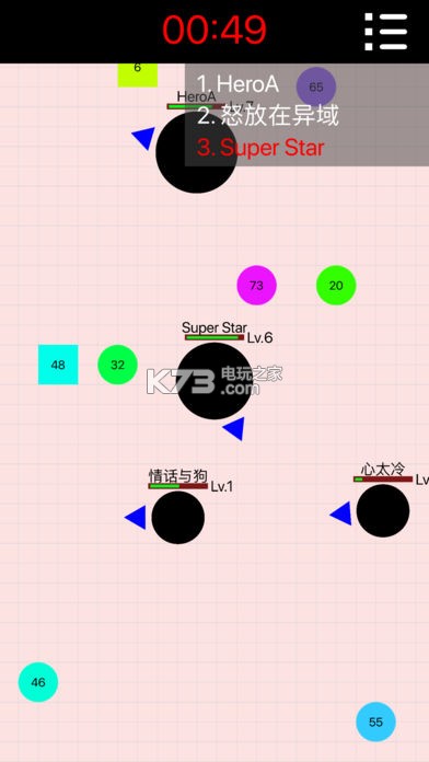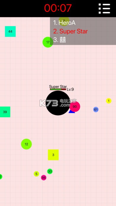 《吞噬方块大作战》.io的游戏玩法,小小的黑色圆球黑洞,能够滑动控制方向,庵后吃掉比你小的圆球,让自己来发育起来。手游每一局都有规定时间,看看你能不能得到第一名。