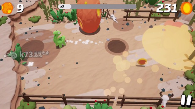 游戏里的场景和角色都是立体感十足的卡通风格,再加上角色们瞪大双眼仰头望天的造型,显得非常喜感有趣。而让它们表现得如此“智障”的原因,则是陨石——这也是玩家要控制它们去躲避的东西。