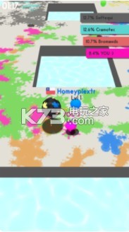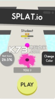 《Splat.io》是款是十分简单的io游戏,玩家将扮演一个小球,和早期的弹弹堂的玩法是类似的,你要帮助这个小球不断的占领一些地方,把整个地图全部渲染成属于你的颜色,还有一些工具可以帮助你.