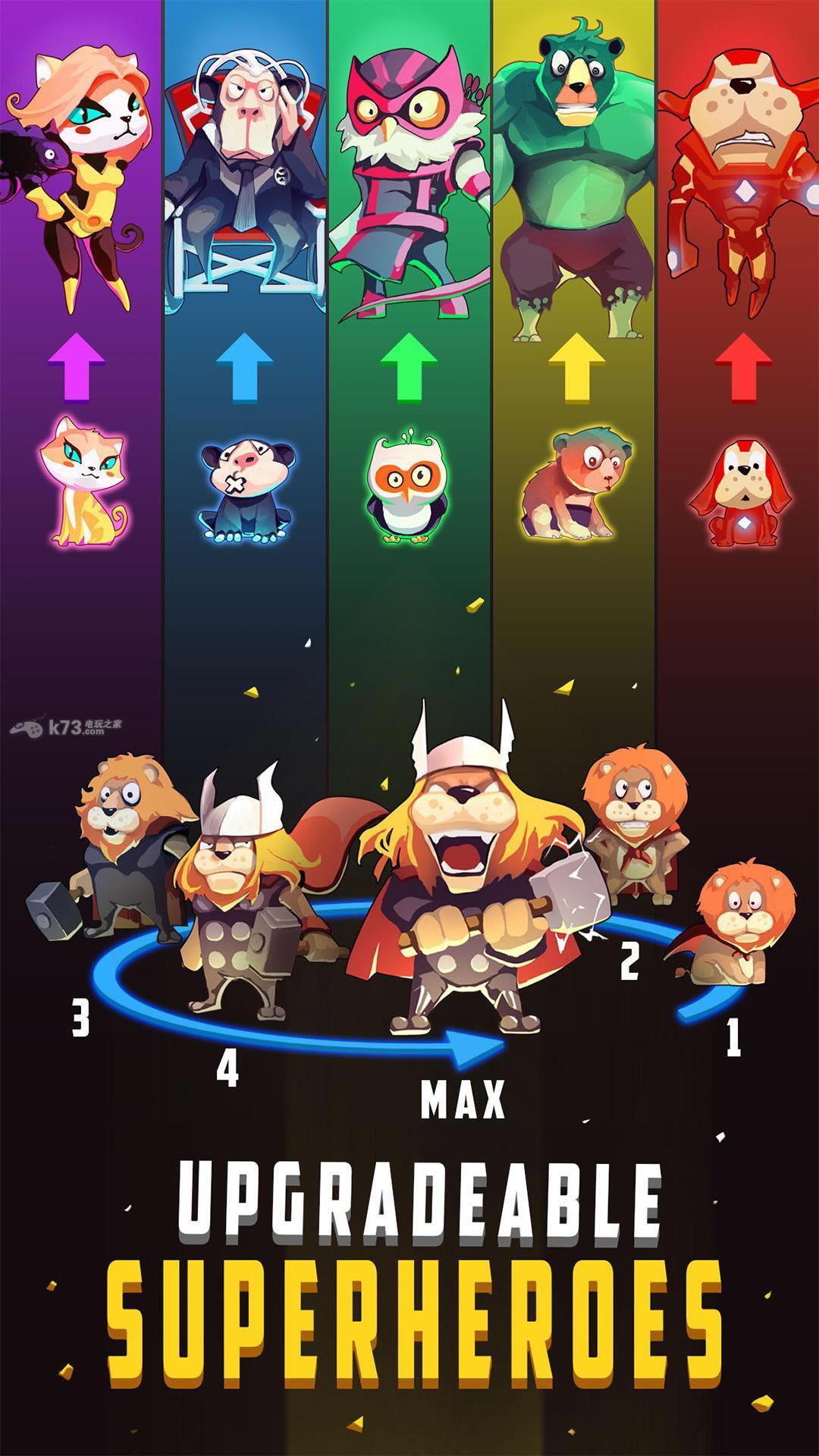 《宠物复仇者Petvengers: Super Hero Puzzle》是款以消除类玩法为主的趣味休闲游戏,游戏以外星人入侵动物们举止的星球为背景展开,动物们将化身复仇者联盟中的超级英雄们与外星人进行对战。