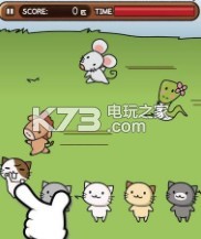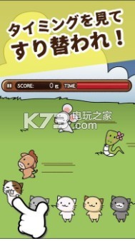 操作超简单,等动物路过时点击对应位置的喵星人,让它们撞到过路的动物