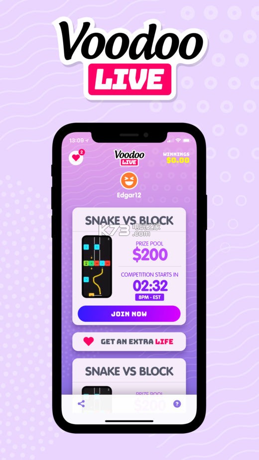 从蛇与街区开始,Voodoo Live呈现了一种新的竞争形式,玩家可以在日常比赛中互相竞争。每一轮都能活下来,尽可能高的得分来赢得奖池的份额。