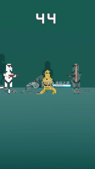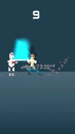 游戏一开始,屏幕的中央有一位由你控制的拿着光剑的战士。随后两侧出现手持致命激光枪的银河士兵,他们缓慢向战士走来。点击屏幕左方战士会向左方挥动光剑,点击屏幕右方也同理。很快左边向你靠近的士兵被你的光剑一刀两段了,此时右边的士兵也被你迅速的解决了,但你并没有留意到左边那个士兵早已按下了激光枪的扳手,别吐槽为何激光枪有没有扳手,因为你已经倒地。