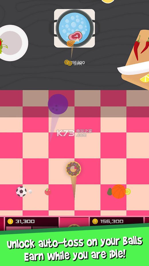 《Idle Toss》游戏中玩家需要做的就是将球扔进洞中,从而获取金币,还有这自动的投球功能,即使你不在线,也能不断的获取金币,来解锁新的厨房和宇宙等主题。