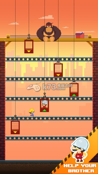 《矮壮金刚》本作讲述的是一名建筑工人与金刚之间的故事,在游戏之中玩家扮演的建筑工人辛苦获得的午餐却被捣乱的金刚夺走,为此玩家需要躲避各种突然来袭的危险,夺回属于自己的午餐。