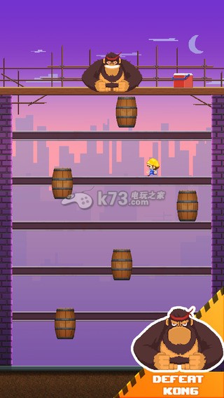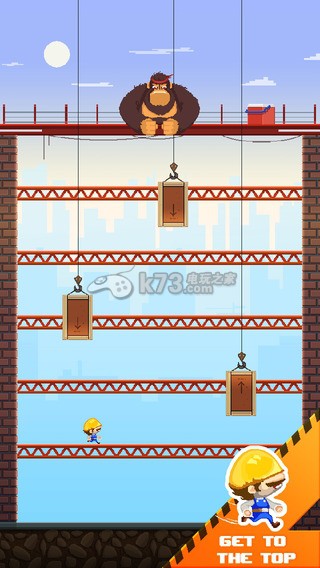 《矮壮金刚》(Blocky Kong)是一款趣味十足的动作休闲游戏。矮壮金刚游戏中玩家扮演建筑工人,为了夺回最爱的午餐,你要左右闪避各种工地危险,不断攀登上高楼去追赶捣乱的金刚!