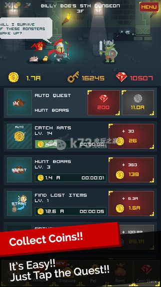 《比利鲍勃王子<Prince Billy Bob : Clicker>》是由著名厂商进行推出的一款古典城堡的冒险游戏,因为得到上天的指示,所以即将他踏上了这个冒险的旅程,不仅可以消灭路上的敌人,还可以通过这个方式来积累金币,升级装备!