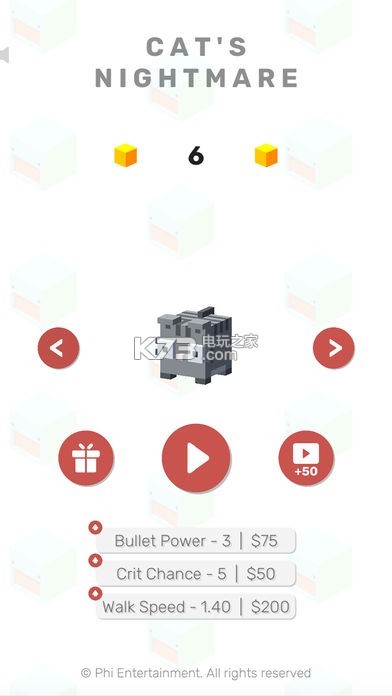 《猫的噩梦(Cat's Nightmare)》是一款趣味全新的街机游戏,玩家可以在游戏中享受丰富可爱的小猫咪们的冒险,游戏画风十分可爱,玩家需要帮助可爱的小猫们射击僵尸来获得不同的硬币,使用这些硬币来进化自己。