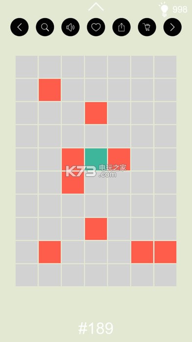 每局会有一个绿格子作为起点,通过点击或者滑动到相邻的格子,填充满所有灰色的格子则为过关,红色格子为障碍物,不能通行!