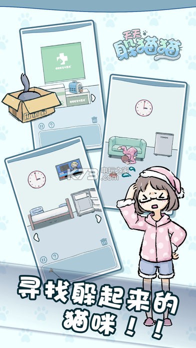 《天天躲猫猫》是一款全新趣味的躲猫猫的游戏,玩家可以在游戏中帮助可爱的萌猫们逃离不同的场景,游戏以简单休闲的画面打造,玩家可以在其体院趣味的萌猫捉迷藏的玩法。