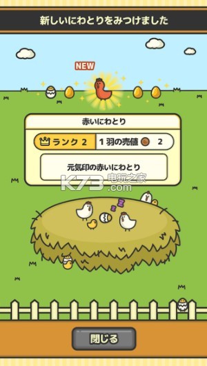《鸡蛋小鸡工厂(たまごひよこチキン)》是一款日式风格的手机游戏,玩家在这里需要把你的小鸡照料好,更有多种小鸡的品种,看看你会培养出怎样的小鸡!