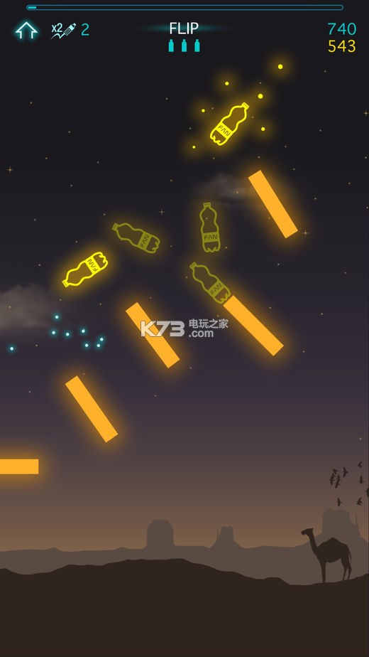 《Bottle Ground》这是一款翻转水瓶的游戏,这款游戏以趣味的玩法打造,玩家可以在游戏中通过技巧性的翻水瓶来帮助瓶子穿越不同的集合空间,游戏内容休闲而有趣,是一款趣味的街机手游。