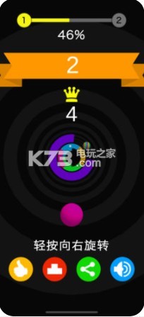2.玩法很简单,按住屏幕彩球向右旋转,松手自动向左旋转。