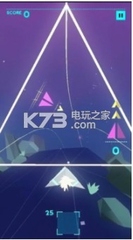 操纵小飞船吃不同颜色的三角块以及躲避障碍物和冲破障碍物,右边会显示两个目标颜色三角块,飞船行驶在三角形轨道上可以左右滑动切换轨道,向前滑撞破三角墙,主要考验反应能力。