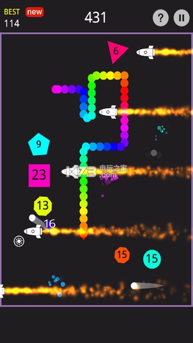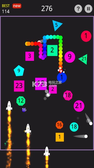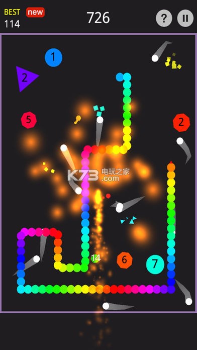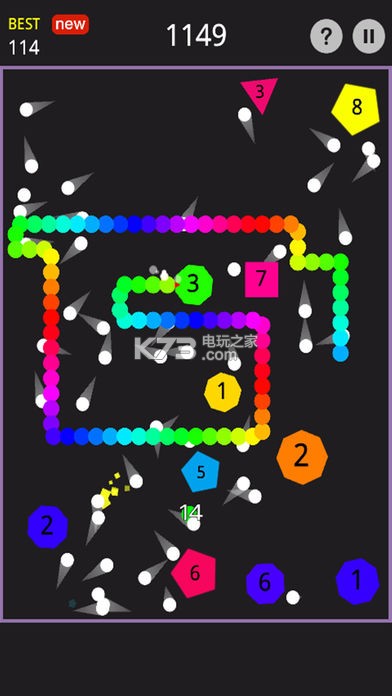 一款趣味十足的贪吃蛇弹球游戏,游戏玩法结合了贪吃蛇和打砖块弹球的精髓,你不必担心接不到球而游戏失败,速度不重要,路线最关键,撞击方块,获得更多的弹球,并积累更多分数!