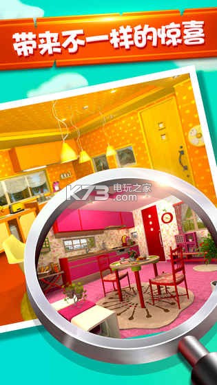 在梦幻浪漫的水果迷屋里有一只水果精灵,它在屋子里藏了很多水果,有草莓、青苹果、橙子、柠檬、桃子、蓝莓、油桃。每个房间都是精心设计,身为主角的你必须开动大脑注意每一个细节并且把他们都找出来才能获取打开大门的钥匙。