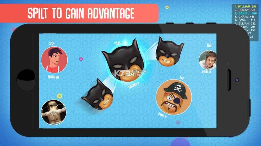 与几十个玩家同时上挤满了兴奋的巨大的服务器玩!破坏玩家获得XP,但没有得到击落自己!保持安全有!在免费为所有的动作和使用分裂,收缩,躲避战术在线浏览赶上其他 - 或避免它们!玩在线,离线或由自己!你能接管整个地图,成为超级玩家?捍卫自己对他人,成为陆地上最大的质量。不要打了!收集电源UPS,以获得优势。