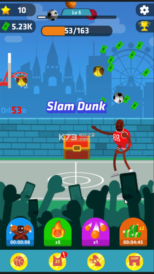 《灌篮大师(Idle Dunk Masters )》是一款休闲的街机游戏,玩家可以控制可爱的人物在不同的画面上进行篮球对决,游戏采用了q版的风格打造,夸张的游戏界面让游戏玩法更显趣味。