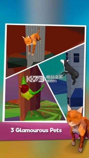 狗、猫和鸟是三种宠物,你可以进入游戏,它们在这些场景中玩过。