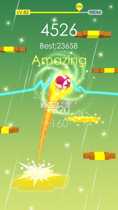 最重要的是,小球下降时一定要找一个方块弹起,否则就要重新挑战啦!