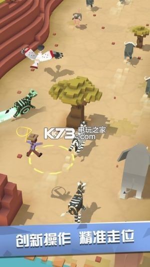 《疯狂动物园》是一款集3D像素、急速跑酷和模拟经营为一体的休闲小游戏。在游戏中你将扮演一名富有冒险精神的绝世牛仔。在高速移动的情况下与各种动物一较高下。你要尽可能多的套住动物,将它们统统带回飞船上的“空中动物园”中饲养;并进行园区升级,以便迎来世界各地的游客光临赚取更多金币。 Now,让我们去好好大干一场吧!