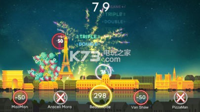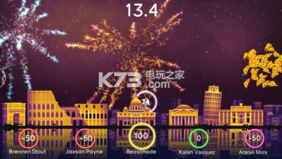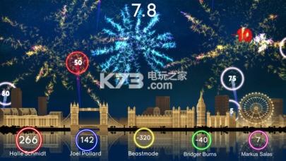 尽可能多地击出天空中的烟花,直到时间用完为止,每一轮得分最低的球员被淘汰,