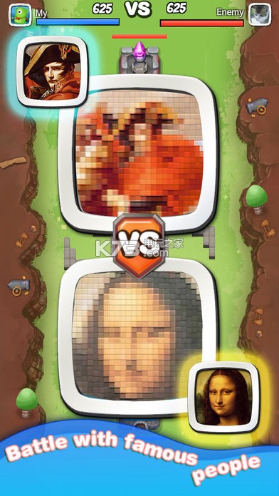 《像素大战》是一款创新类的游戏,这款游戏中,玩家可以上传一张图片, 游戏将把你的图片分解为256张像素格子子,玩家需要控制自己的士兵来战略别人的像素土地,守护自己的像素格子。