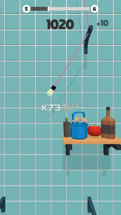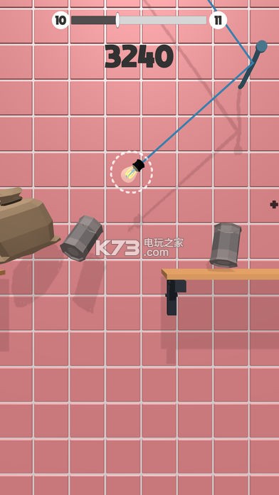 让灯从物体摆动到物体!从钉子上荡下来,把衣架挂在书架上,放到底部。推和粉碎项目,以获得更多的积分!
