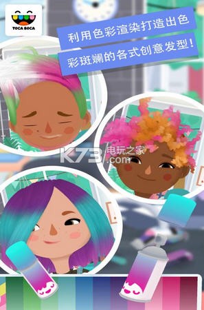 颜色:准备好染色了吗?Toca Hair Salon 3 引进了一款更高级的头发染色工具,这种工具使用两种不同的容器装盛不同尺寸的喷雾器。而且,全新的彩虹喷雾器可以让你随心所欲地喷染出色彩斑斓的梦幻发型!