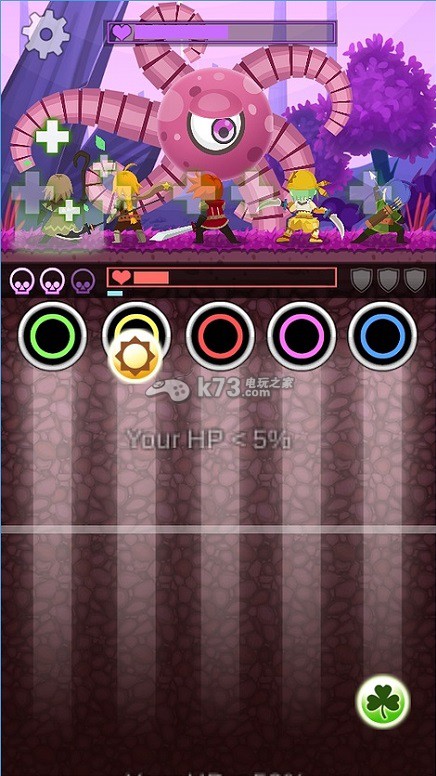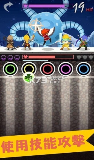 玩家要利用手指滑动法力珠子到正确的勇者身上,勇者集满所需要的法力即可放出强大的技能并造成巨大的伤害。但巨型的怪物也不是简单能够击退的,
