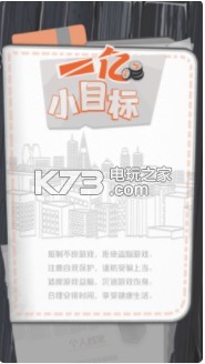 《一亿小目标》是一款小型商业游戏,而你的目的是先赚它一个亿,你将可以自主选择从事的行业以及所投入的资金和创业团队,注意,资金的规划很重要,如果没有资金,你的游戏会提前结束.你的目标能够实现吗?