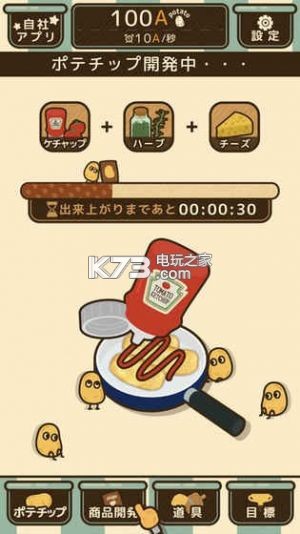 《薯片厨房(ポテチップ kitchen)》是由GLOBAL GEAR, K.K.打造的一款趣味休闲手游,在游戏中你将拥有属于自己的厨房来制作各种不同的食物,各种口味的薯片等你来解锁。