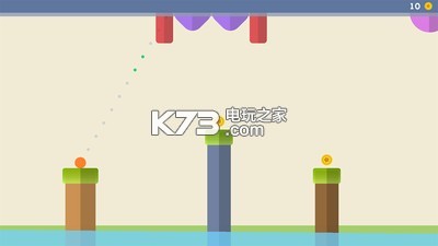 这是一款玩法十分简单的休闲游戏,只需调整小球发射的角度,通过墙壁反弹掉落至下一个平台,