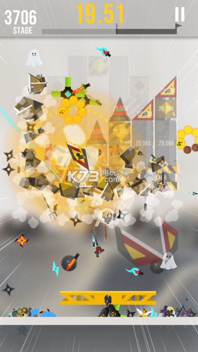 在游戏里玩家需要不断地射出各式各样的武器,将上方的方块给射穿!