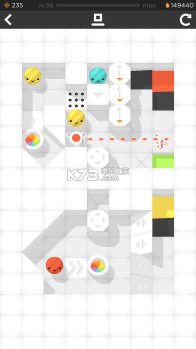 在游戏后面关卡,将会有不同颜色发小滑球加入,让我们利用各种障碍物,一起把小滑球送回家。相比前作,本作共有200个关卡,同时也得到了很多创新。