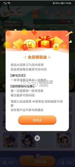 王者联盟针对静态收益全新推出全民领现金活动,放血回馈27%高中奖率,现金收益每日最高可达45元。零投入,玩法简单,中奖率高,时时抽奖不间断,实在想不出不参与的理由。