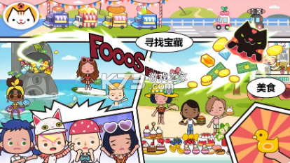 海滩美食街:与朋友在海滩来场沙滩排球,寻找岛上的神秘宝藏,小心美食的诱惑,吃太多会撑坏肚子