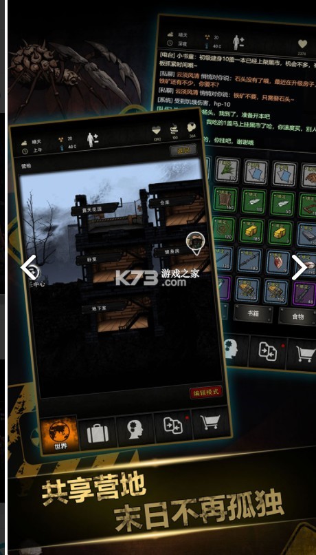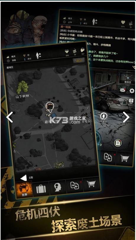 世界充满危险与机遇,探索不同的区域,收集物资是生存的基础