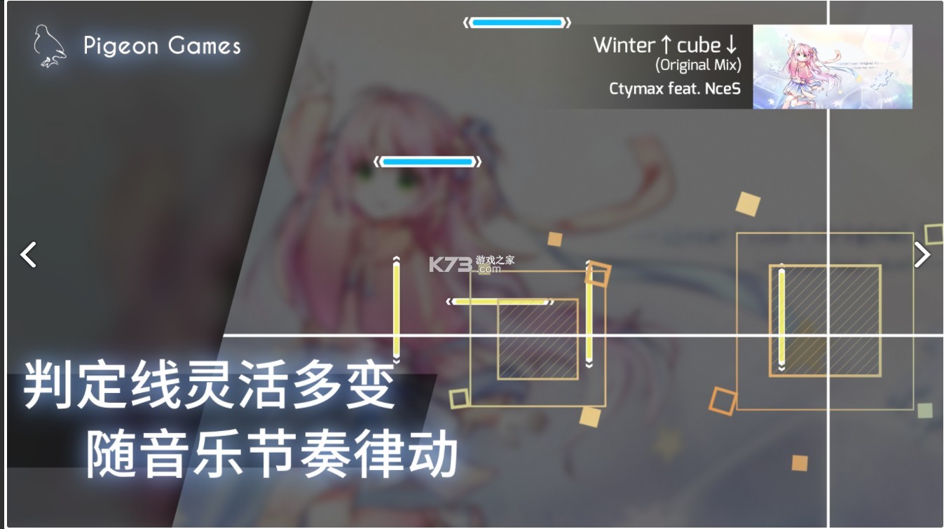 由4种音符组成的无轨谱面,搭配灵活多变的判定线,带来不一样的音游体验。在游玩的过程中,带给您极佳的动作感和爽快感!