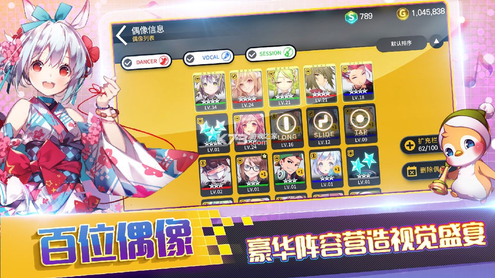 五个种族数百位练习生,专属偶像技能队长应援技能,悉心搭配打造属于你自己的偶像团体。