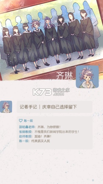 玩家在校园的这段时间中体验,从一个居家新闻的普通人慢慢感受一切的变化,与其他三个普通的大学生们一起渡过生活,愉快特殊的方式来体验,超多的毕业设计需要自己的构建,在有趣直观的校园现场中体验。