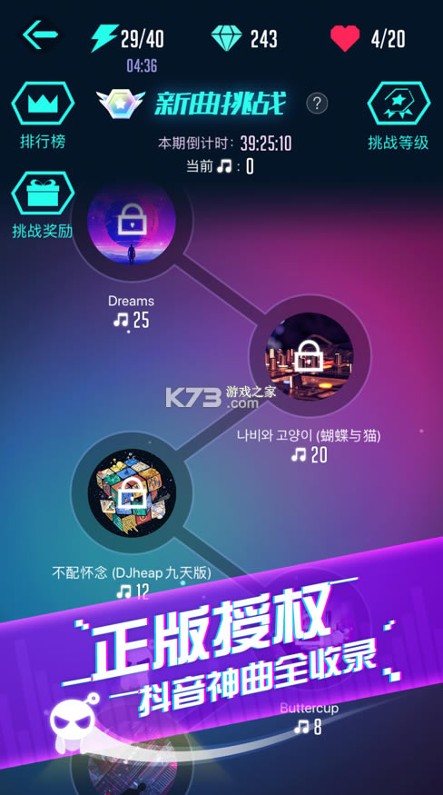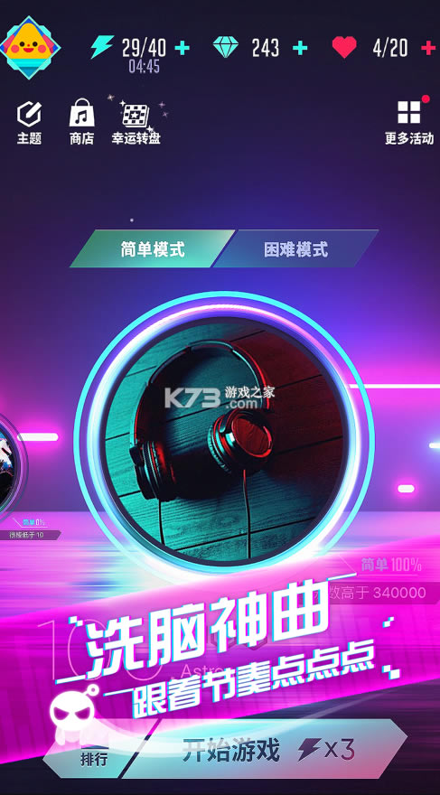 一款充满音乐节奏的音乐游戏,如果您也是一个音乐聆听爱好者,那么在这里您只需要 戴上耳机,打开游戏,一秒钟就可以轻松置身于幻想的世界。这里有很多炙手可热的抖音神曲,手指随音乐节奏轻触屏幕,和古灵精怪的球球们踏上奇妙的音乐之旅!玩法也是非常的丰富,让您感受不一样的玩法,有节奏就可以找到更多撞击的乐趣了。