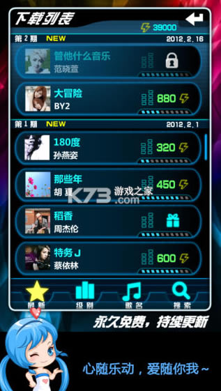 唯一一款以华语流行音乐为主要介质的动态下载休闲音乐游戏
