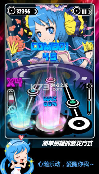 以华语流行音乐为主要介质的休闲音乐游戏,所选取的音乐也是以日韩和英文歌曲为主,这款游戏内涵括了周杰伦、萧敬腾、蔡依林等多名国内知名歌手的歌曲,可谓是国内首款、原创、集百家之口味于一身的多元化音乐游戏,游戏操作方法简单易懂,只需短短十几秒,玩家就可以用屏幕上的3个按键掌握基本的游戏方法,伴随着音乐节奏演奏出动感十足的音乐,游戏采用解锁模式,玩家在挑战不同难度音乐的过程中能够不断提升自己的游戏技巧