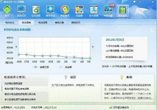 金山电池卫士独有的“电池保养功能”可以最大限度的延长电池寿命,主动引导用户进行电池维护,智能进行定期的完全循环充电以保证锂离子的活性。此外,金山电池医生还能够清晰、具体的展现出电池损耗图,帮助用户更加直观、方便的对电池进行维护和保养,以达到延迟使用寿命的目的。