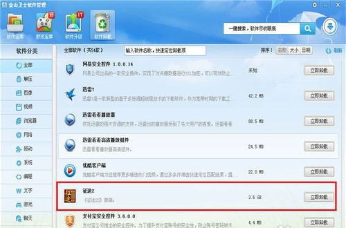 4.在安装的软件中找到自己不常用的软件,在后面有个“立即卸载”。